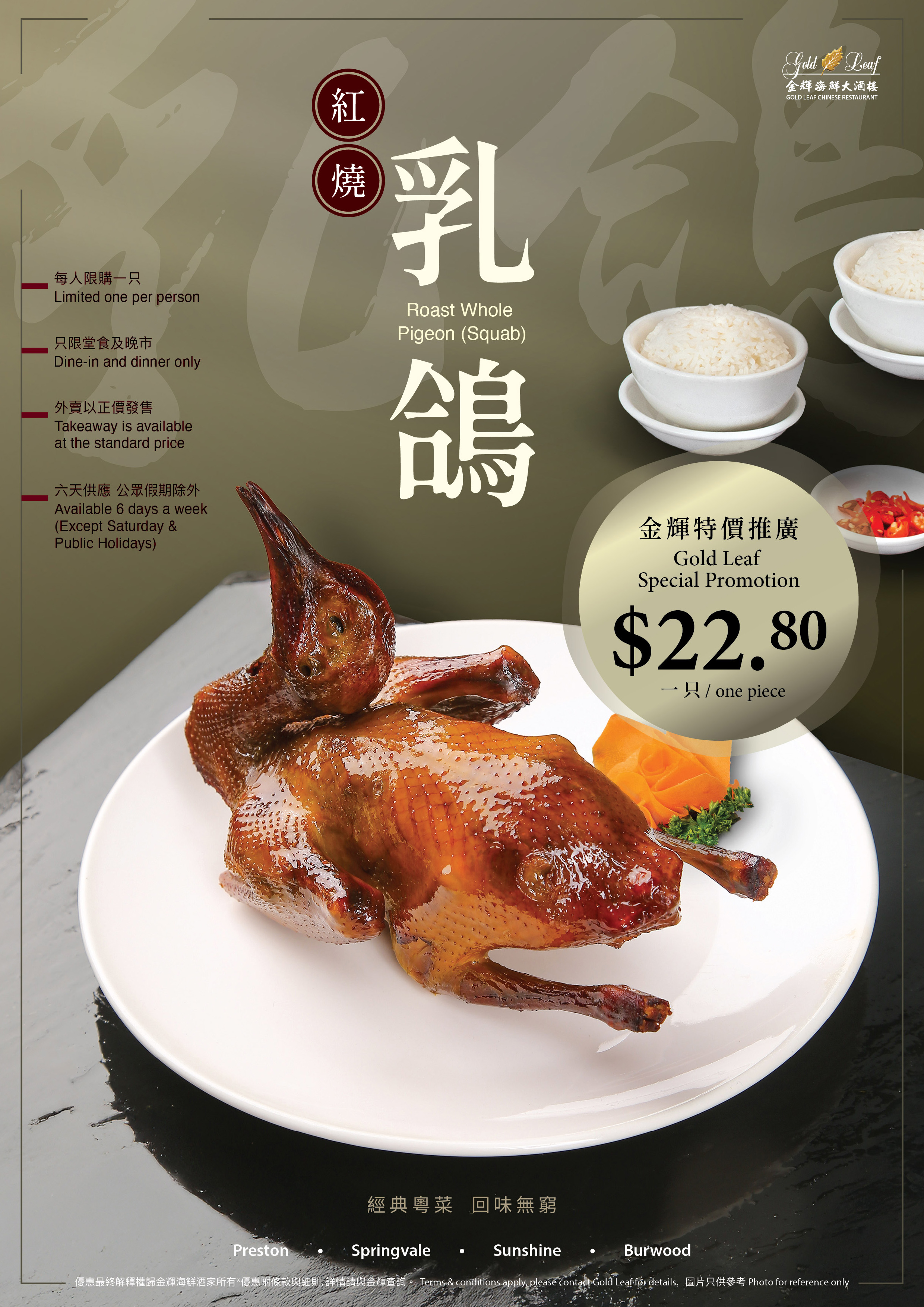 ** GOLD LEAF SPECIAL PROMOTION – ROAST WHOLE PIGEON **